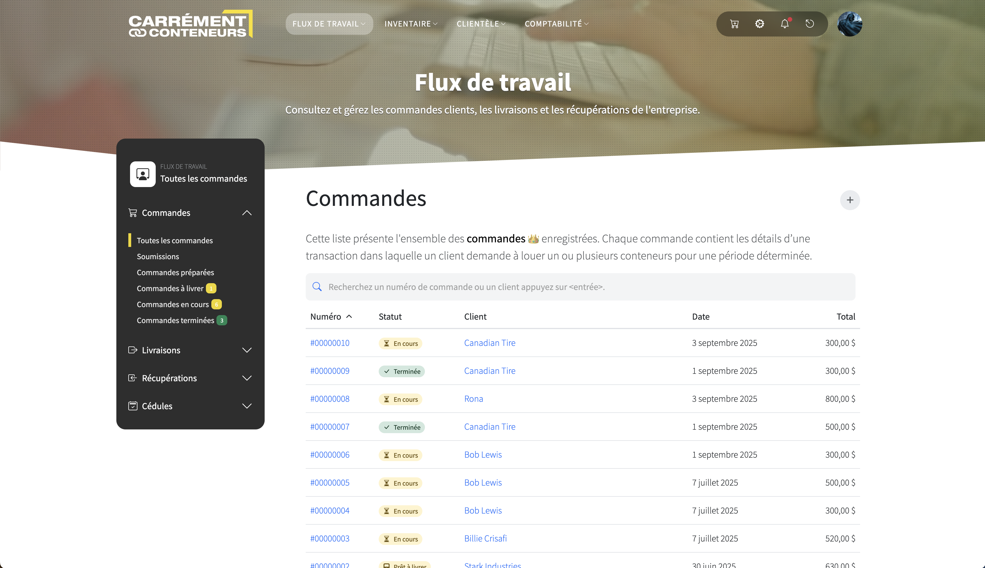 Carrément Conteneurs centralise la gestion des clients, des stocks et des commandes pour les sociétés de location de conteneurs. De la tarification à la facturation, tout est simplifié dans un système puissant et unifié.